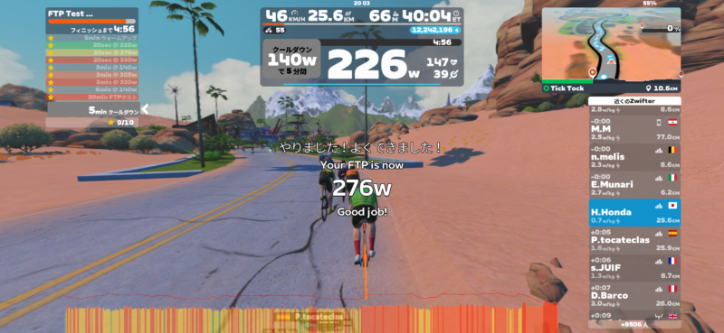 FTPは276Wで前回より約10W更新